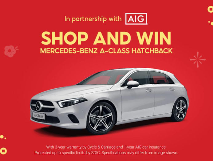Shop from now till February 2 to enjoy daily 28% cashback, a daily 8pm huat hour flash sale, daily 888 free orders, and a chance to win a new Mercedes-Benz A-Class Hatchback, where each checkout from now till Feb 1 qualifies for one chance to enter the lucky draw, and checkouts on Feb 2 double your chances. Enter the draw to win your dream car here.