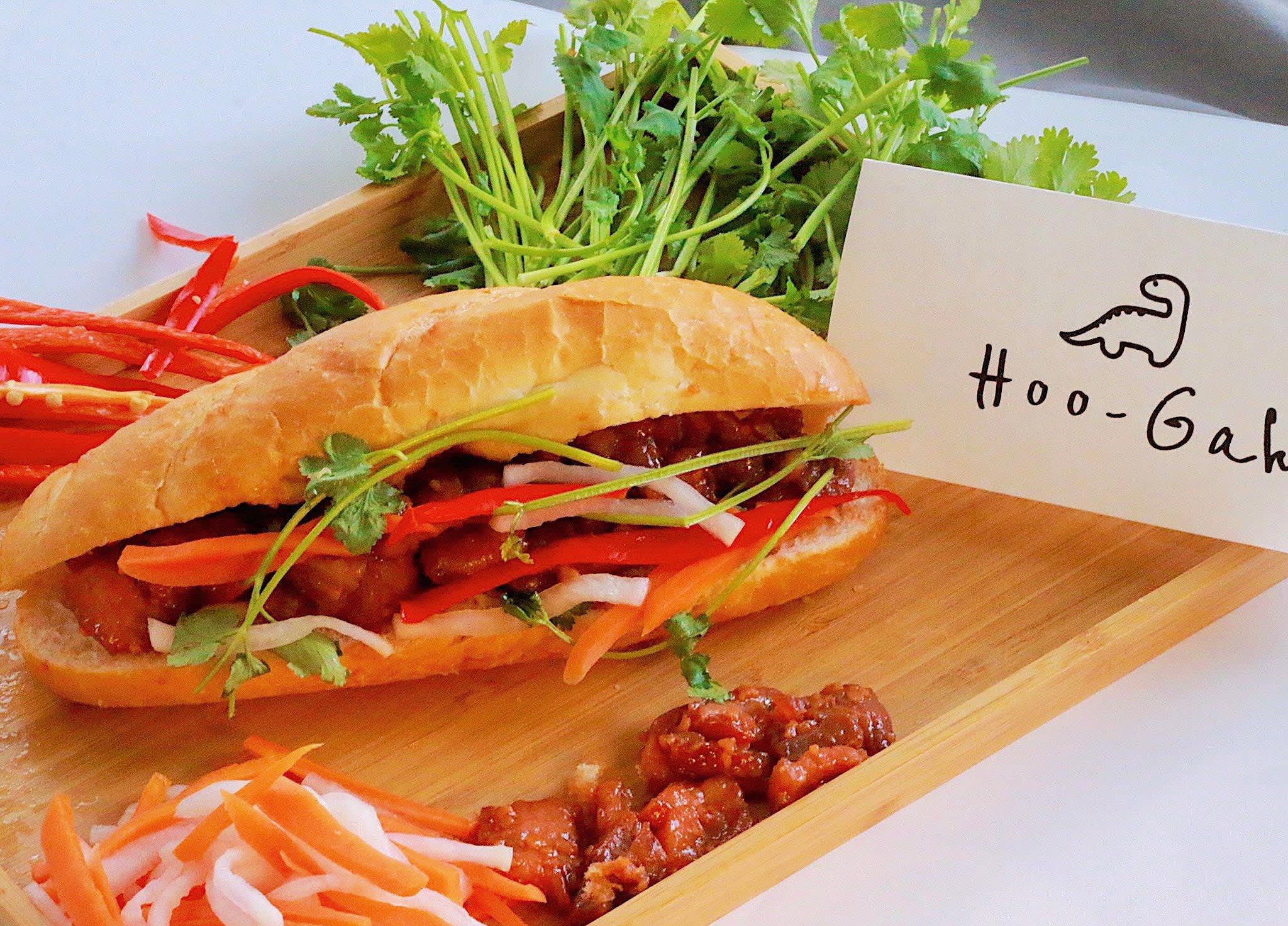The Central Business District has yet to return to its pre-pandemic hustle and bustle, but that hasn’t stopped five entrepreneurial schoolmates (two from Vietnam, the rest from China) currently enrolled in Kaplan Singapore, along with one of their Singaporean housemates, from opening a minimalist chic cafe in Shenton Way called Hoo-Gah. It serves not-so-traditional takes on the Vietnamese French loaf sandwich, banh mi.