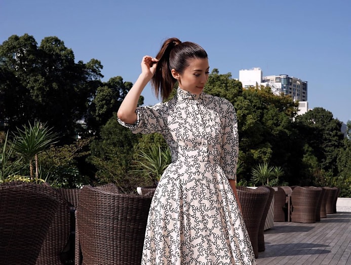 This chic tie-dye jumpsuit, which Jeanette donned for her 8days.sg photoshoot at her patisserie Once Upon A Time, gives us '90s vibes.