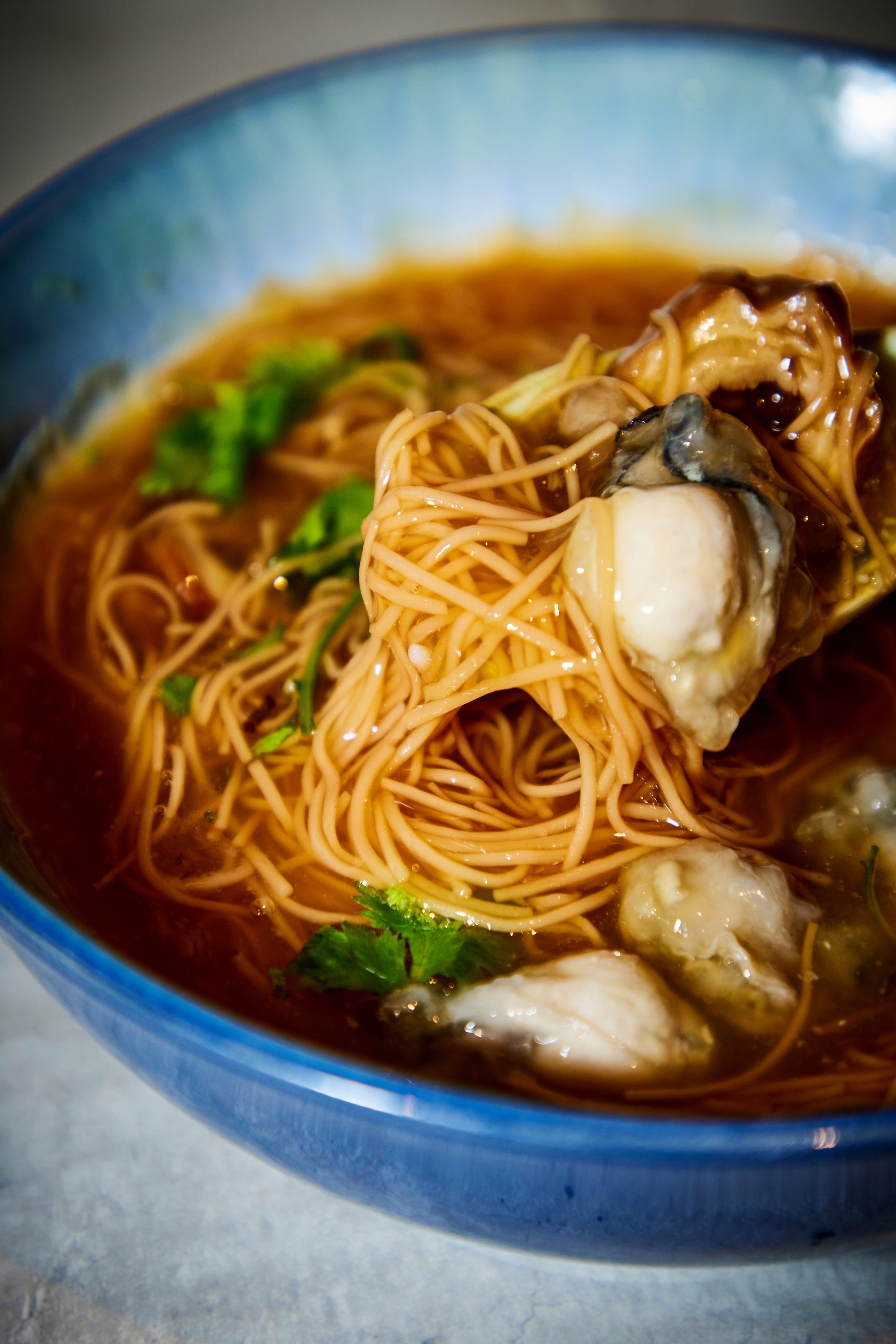 The mee sua (rice vermicelli), though delicate and silky, retains a springy bite while swimming in a smooth bonito-based soup thickened with starch. Morgan cleans and prepares the pig intestines herself – a process that requires washing with salt – so there’s no foul odour. After braising, the intestines add a lovely chew and savouriness to the broth, which we found a little bland during our first tasting. A much-improved version was served at our repeat visit a few weeks later – this time, the soup is well-seasoned with dark vinegar and a spoonful of minced garlic, and rounded off nicely with plump oysters and chopped coriander.