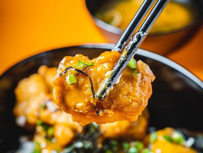 One of The Bowl Story’s top sellers, the Chicken Katsu Don is a riff on one of the very first recipes Ding Zher learnt to make in culinary school bootcamp. The katsu uses chicken fillet, brined overnight in a solution of salt and sugar. This is what locks in the juices and keeps it tender and succulent throughout the cooking process. Next, the fillets are tenderised with a mallet, before being breaded in panko crumbs. Finally, it’s deep-fried till golden-brown.