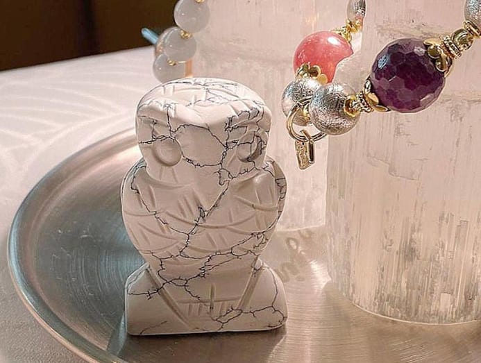 Covet Crystals Jewelry's Howlite owl is popular with mums who want to help their kids manage anger and frustration and promote better sleep.