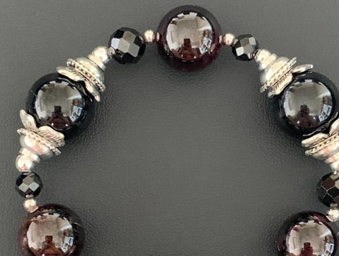 Dark coloured stones such as Black Tourmaline and Black Onyx, as seen in this bracelet, can help with anxiety and stress during difficult times. This piece is $409. There are simpler pieces in CCJ that start from $100.