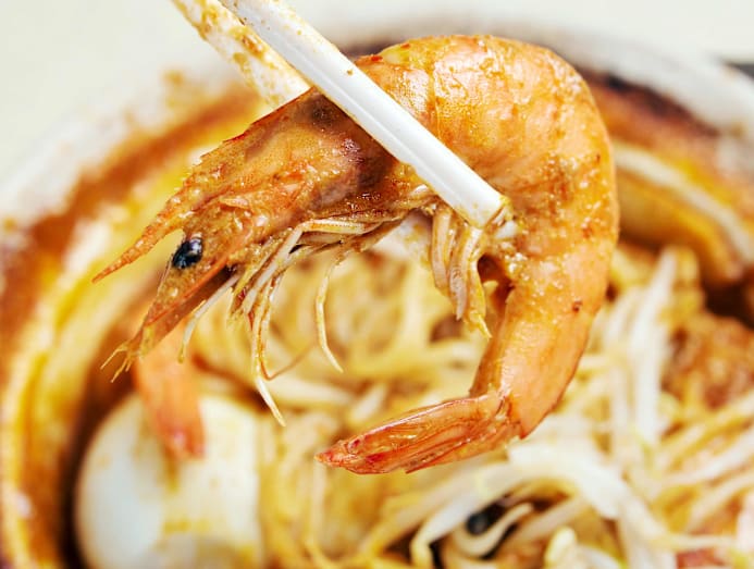 Because of his claypot serving method, the food at Laksa House comes bubbling hot – resulting in high demand on rainy days, Jacob says. He prepares the laksa components at the start of the day, then assembles and heats them up in individual claypots upon order. This second boil reduces the broth to a concentrated consistency.
