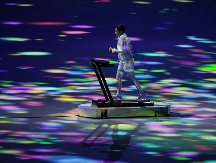 The opening ceremony kicked off with a sequence — featuring Japanese boxer and nurse Arisa Tsubata running on a treadmill, and other athletes on rowing machines and stationary bikes — meant to represent the isolation and challenges everyone endured in the last 18 months. Tsubata, 27, was training to qualify as an Olympic boxer but her dreams were dashed by the pandemic when the International Olympic Committee dropped the qualifiers and instead allocated spots to athletes based on their world rankings over recent years.