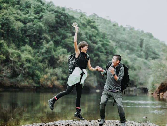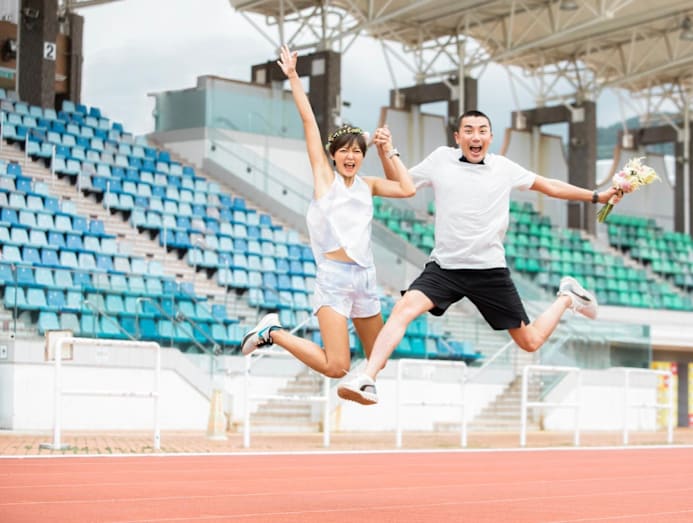 True to their fun, adventurous personalities, the couple opted to have their wedding photoshoot out in nature and on the running track.