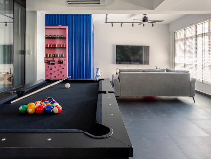 The dining table doubles up as a pool table just by removing the table-top. And when the table-top is flipped to the reverse side, it becomes a ping pong table. How cool is that? “The homeowners wanted something that can entertain friends and family when they visit,” says Akemi.