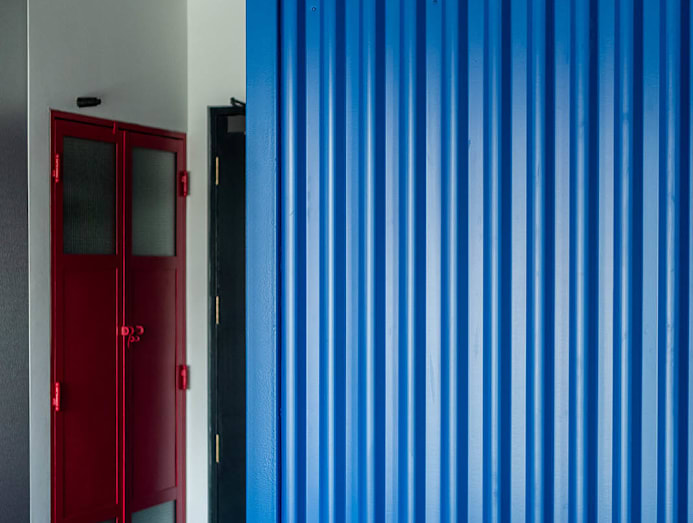 Akemi had intended to use materials from an actual container for the wall panelling. But, due to material and manpower shortage, she ended up customising it using a type of roofing material instead.