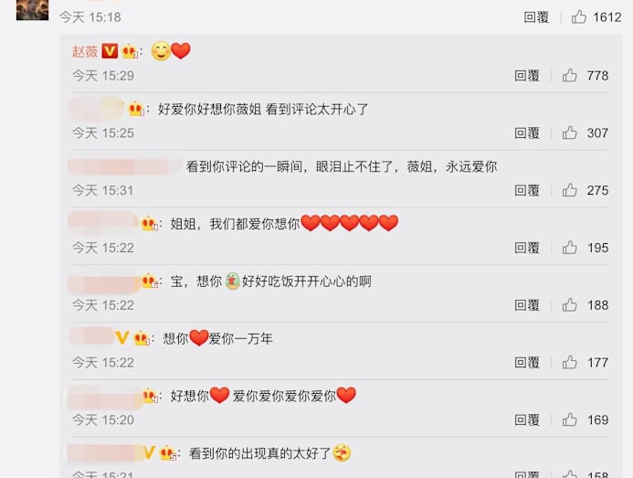 “I love and miss you so much Vicki-jie, I’m so happy to see a comment from you here,” gushed one netizen gushed.