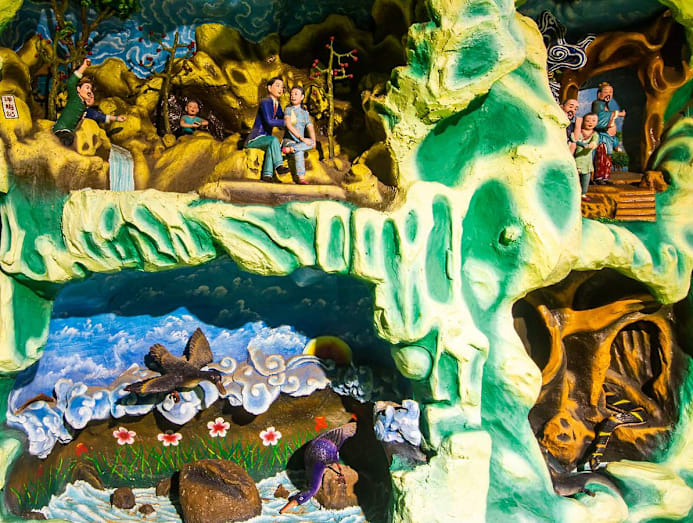 We vividly remember this cave as the spawn of all nightmares, back from when we visited—in daytime—when we were kids. Having seen it all before doesn’t make it less scary. In fact, this is still the most frightening part of our nighttime Haw Par Villa jaunt, just because you’re so up close to the dioramas portraying people getting burned, tortured and more, in this enclosed cave. Suddenly, memories of our mother warning us that this is what happens to people who misbehave come flooding back. But, hey, we all turned out to be law-abiding citizens and filial children... right?