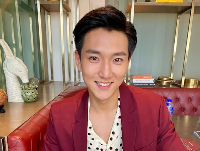 Dressed in a maroon suit and polka dot shirt, the boyish Siming looks all grown up for his upcoming drama Genie In A Cup.