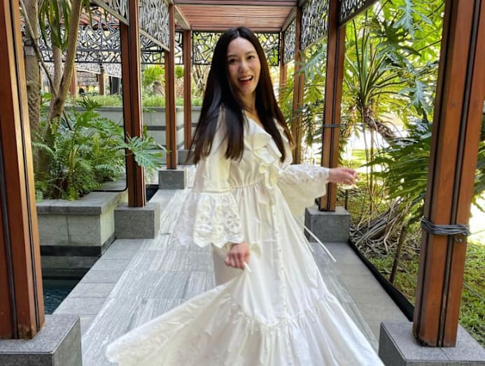 Spotted at the Tiffany Blue Book Collection 2021 event, Fann looked stunning in a frilly polka dot number. We love that she jazzed up her outfit with a pair of knee high boots that added a cool and edgy touch.