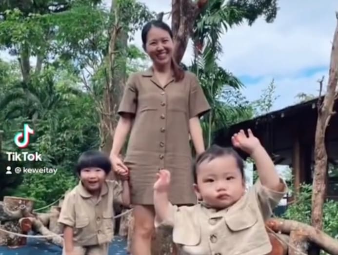 Kewei and her kiddos, Shen Momo and Xiao Pian Pian, dressed the part for a trip to the zoo this week. We especially love the boys' chic safari-inspired look consisting of beige cropped shirt and shorts. Can we have this in adult size please?