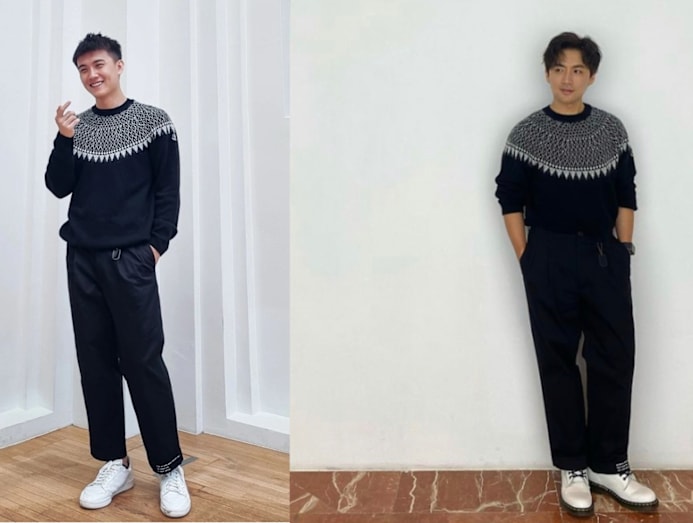 Zetong and Junyang were spotted in the same outfit by Moncler this week — even their backgrounds (white walls and brown flooring) looked similar. While both guys oozed effortless style in the monochromatic look, Zetong wore it better by pairing his outfit with a pair of timeless, go-with-anything white sneakers.