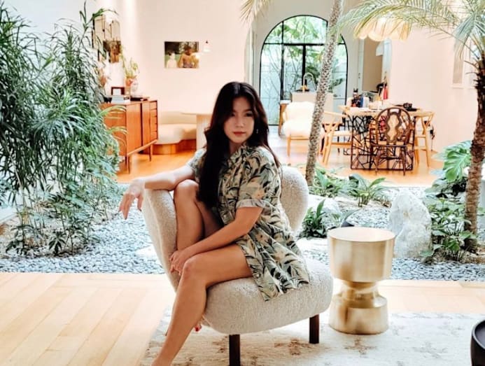Dressed in a breezy summer shirt, Rui En showed us how to nail resort holiday style. We love how the palm prints on her top totally matched with the greenery in the background.