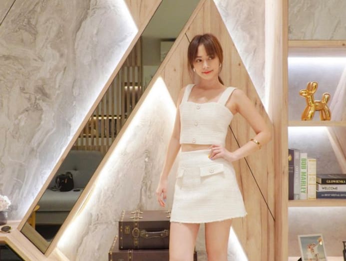 Sweet and demure — that’s how Bonnie looked in this tweed cream white midriff top and mini skirt set. The sky-high silver heels added a hint of glam to her OOTD.