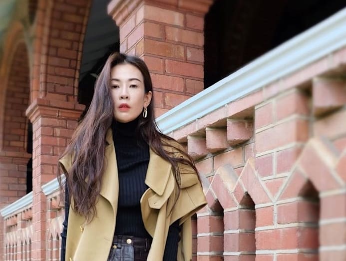Xiuhuan traded her usual frocks for a pinstripe power suit this week. We like how she paired the masculine-looking set — check out the dual-side design on her pants — with sneakers for a sporty look.