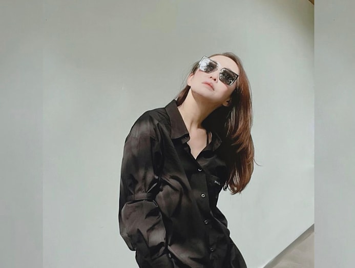 Fann exuded effortless cool in this chic all black pyjamas-to-brunch look. The oversized shades are the icing on the cake.