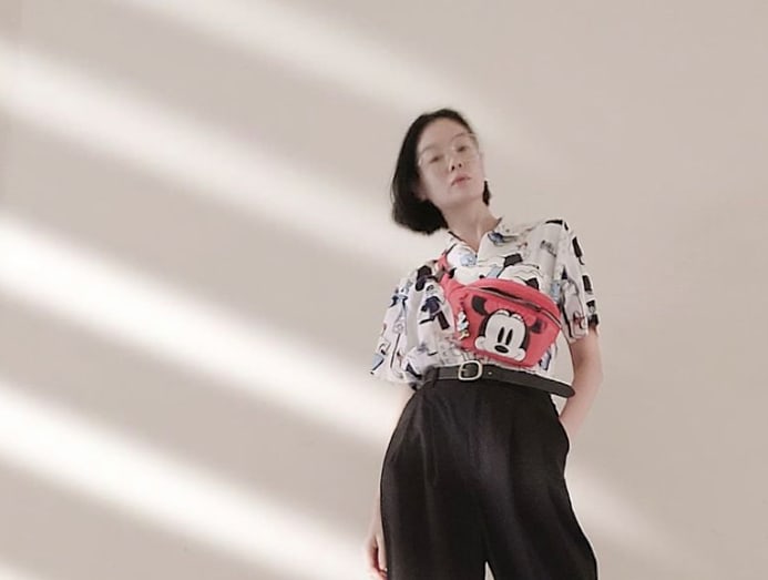 Sheila played it cool and cute this week, sporting a printed short sleeve shirt and high waist pants pairing. Her adorable Minnie Mouse bumbag is impossible to resist, and it can easily be passed to her daughter Layla when she grows up!
