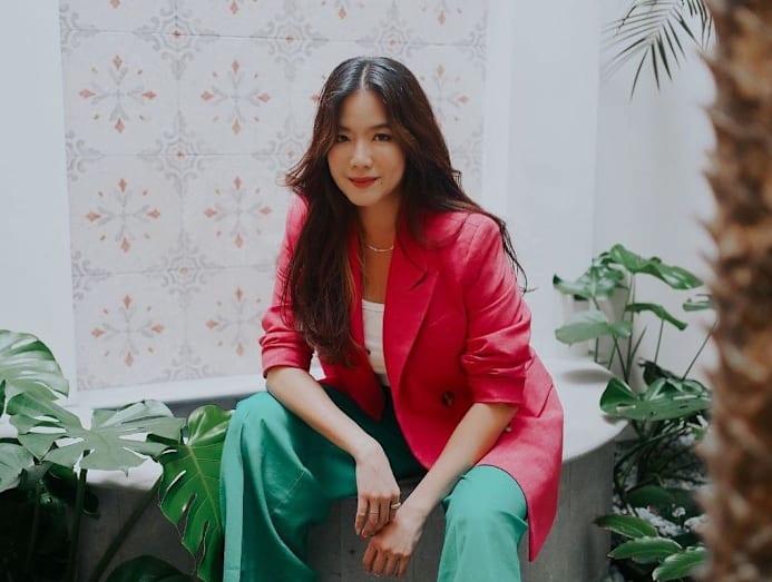 Office wear, but make it fabulous. We love how cheery (and Christmassy) Rui En (who's finally on Instagram) looks in this striking combo.