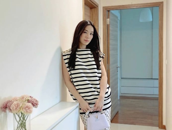 While most of us would play it safe by matching logomania pieces with plain colours, Fiona upped her fashion game by styling her Dior logomania hat and rain jacket, with a polka dot top and leopard print purse. The print-on-print effect is sure to make her outfit a conversation-starting one.