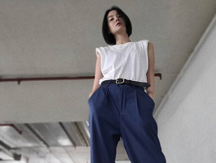 We love our white tees because of how versatile they are. Sheila’s sleeveless version comes with padded shoulders (major ’80s redux!) for a pinch of drama, while her belted trousers help define her modelesque figure better.