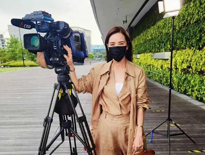 Looking groovy was Kit who was decked in a bright paisley kaftan for the Sing Lang 2021 online concert this week. Her eye-catching number was elevated by the contrasting colours, and we like that she styled it with a pair of sky-high hot red heels for even more drama.