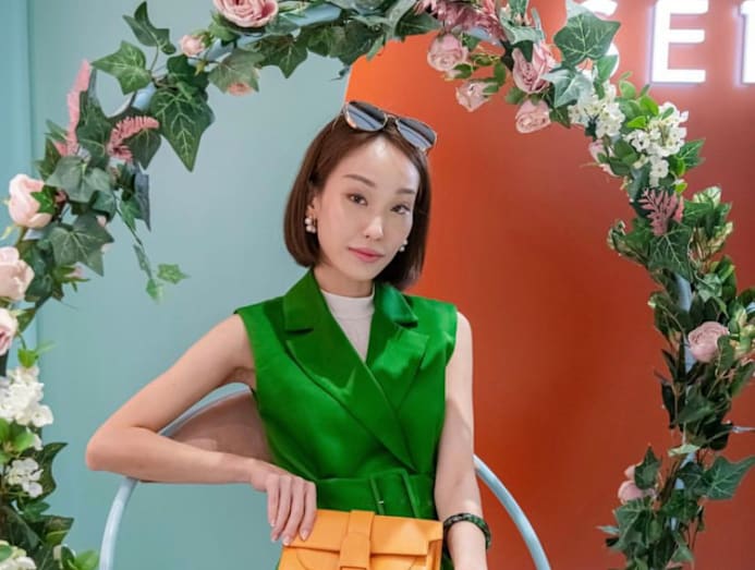 Stylish mum Xiuhuan posed like a pro for the camera, sporting a three-piece pool-friendly set. Instead of opting for matching colours, the actress went for a bold orange bralette for a pop of colour.