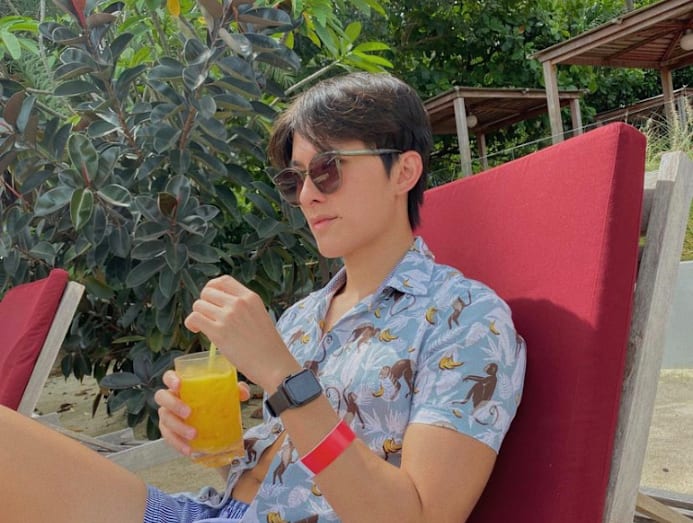Edwin went print on print this week while lounging by the pool. We like how the monkey and banana prints add a whimsical touch to his summer shirt.