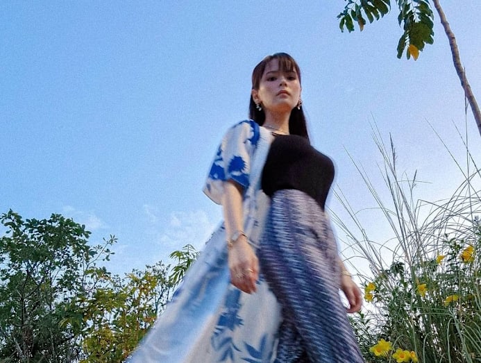 Want swimwear that look vacay-ready? You can count on polka dot prints which add a youthful and jolly vibe to any outfit, like the versatile two-piece worn by Jean above. When the sun sets, slip on a maxi skirt or jeans for a night out on the town.