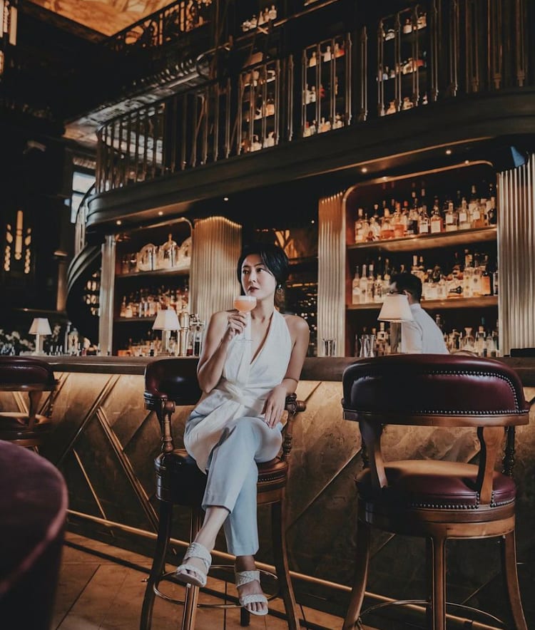 Cynthia’s OOTD above pretty much sums up our ideal weekend activity. Dressed in a classy, tie-front top (reminds us of Marilyn Monroe’s iconic white dress in The Seven Year Itch) and powder blue slim pants, Cynthia looked ready to wind down with a cocktail in hand.