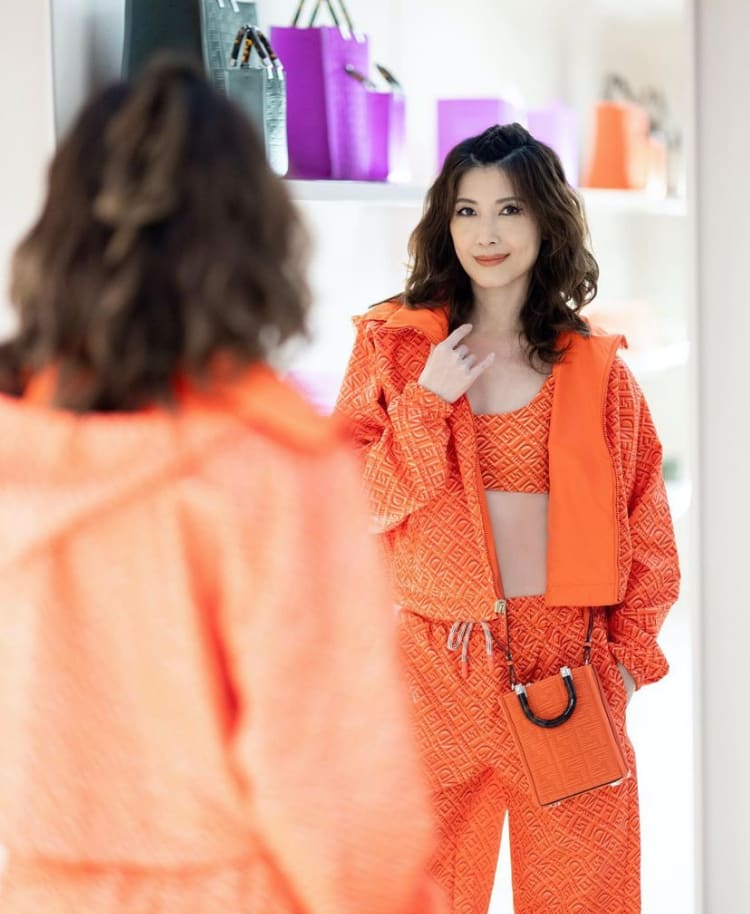 Demonstrating how colour drenching is done in style, Jeanette stood out from the crowd in a striking and sporty looking orange ensemble by Fendi.