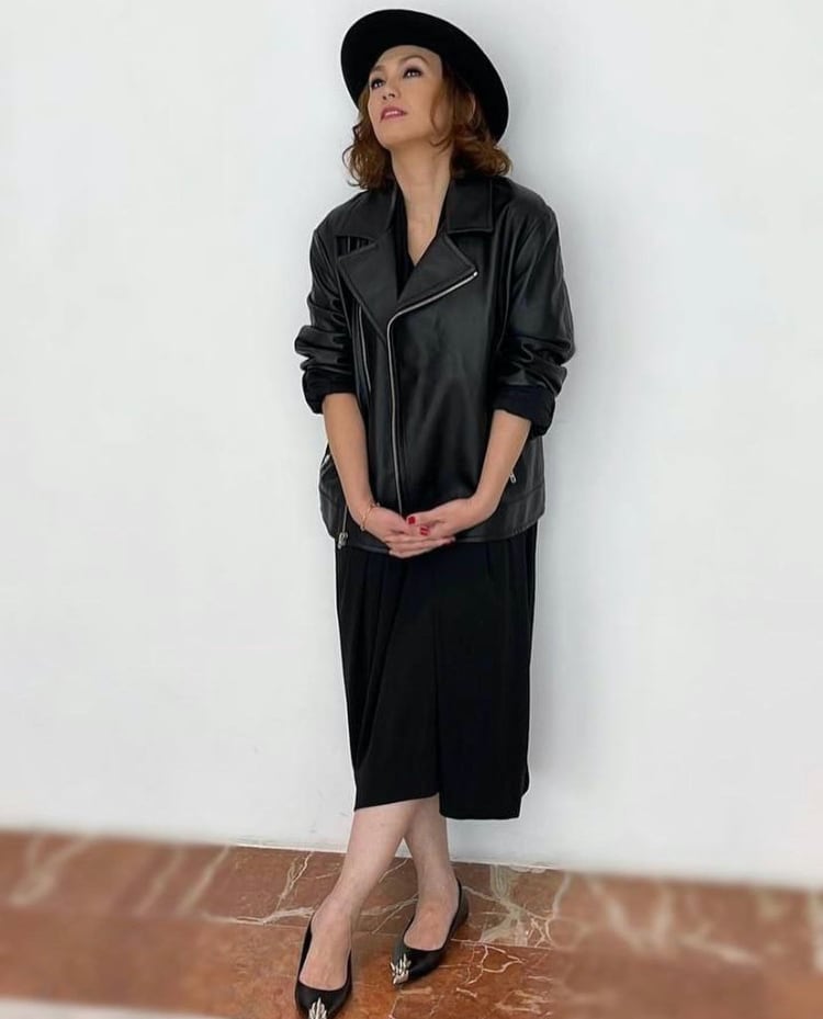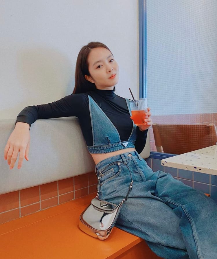By wearing her vintage looking organic denim top by Prada over a turtleneck top, Chantalle managed to achieve a casual, weekend-ready look that's chic and not too revealing.