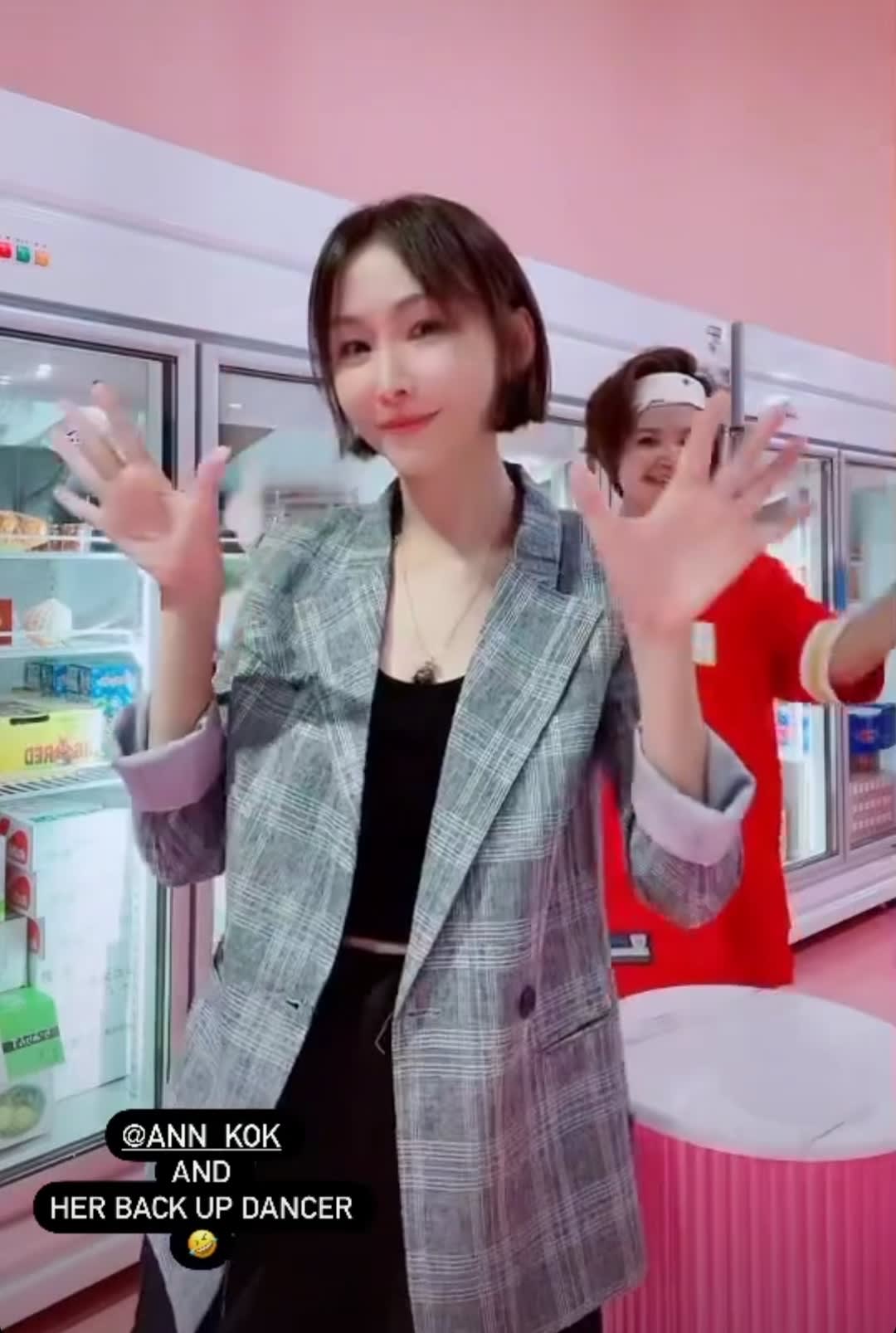 Decked in a classic checked long blazer and black two-piece, the ageless Ann looks extremely fresh-faced, dancing along with Singapore Idol alum and towkay of premium fruits business Olinda Cho for a TikTok video. Must be all those atas fruits she's been indulging in.