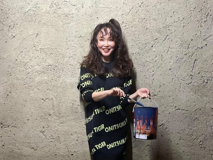 Fann looks fresh and fab in a minimalist slogan sweater dress by Onitsuka Tiger. It makes for a fuss-free and stylish weekend ensemble.