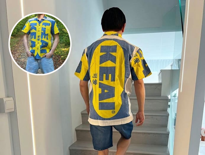 No prizes for guessing which lifestyle brand inspired Dennis’ shirt above. It’s not just the familiar logo design (it’s by local label Vivicheo) that caught our attention; rearranging the letters of the word Ikea to keai (meaning cute in Chinese) is pretty witty too.