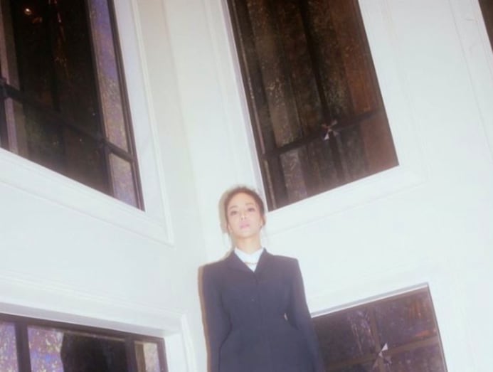 Fiona was spotted in a Dior ensemble consisting of a structured blazer and exaggerated long skirt, playing with proportions and clean cuts that offer a modern update on the office lady look.