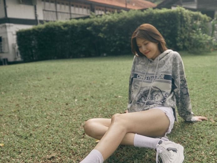 The colours on Yixin’s cami crop top and mini skirt look matchy-matchy with her #OOTD background while her sneakers add an athletic appeal to her look.