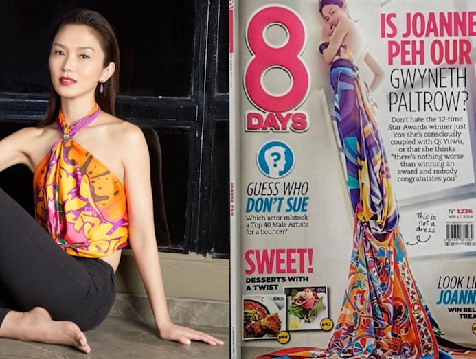 Remember when Joanne donned a dress tied together by four Hermes scarves for our 8 Days cover and later re-wore it to the 2014 Star Awards? Well, she experimented with scarves again, this time, wearing a splashy graphic print design as a top, and styling it with black skinny jeans. Très chic!