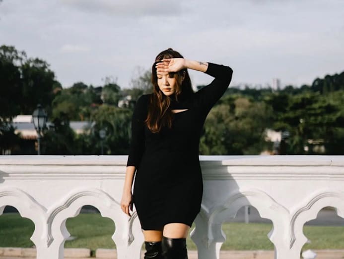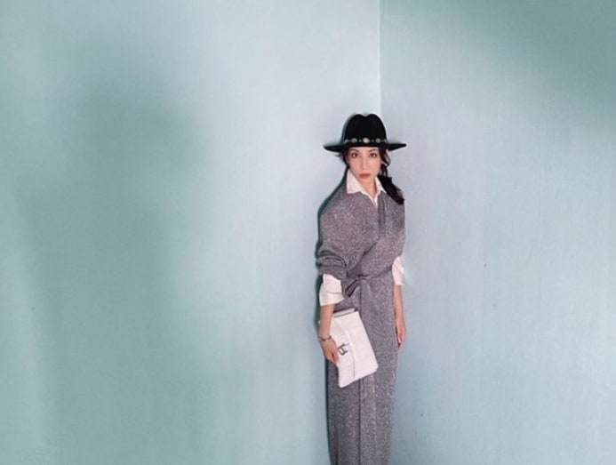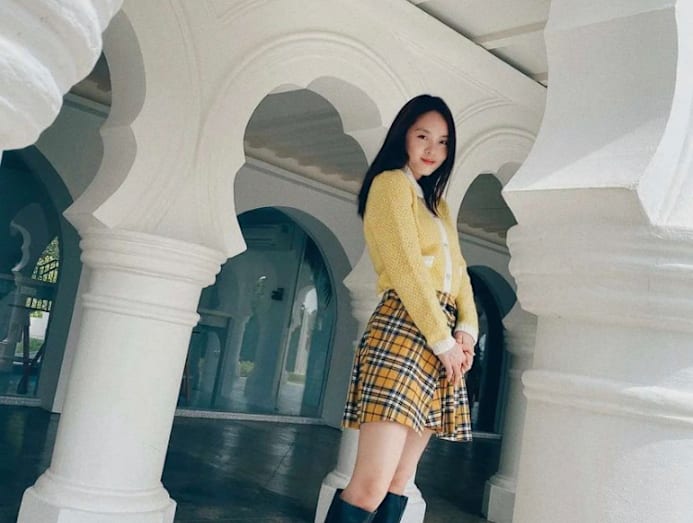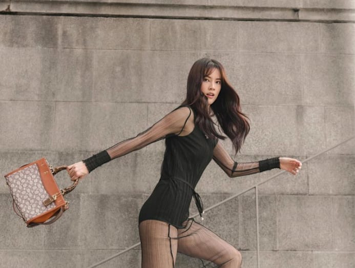 Rui En’s all-black getup is a forever stylish option that looks cool and effortless. The cutout detail and leather-like boots pack major sexy appeal and attitude.