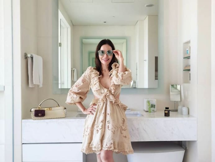 Zoe, who was on a staycation earlier this week, showed us how to dress for a beach vacay in style. She went for a tone-on-tone look by pairing her frilly nude frock with beige slip-ons, and added a pair of oversized sunnies for extra glam.