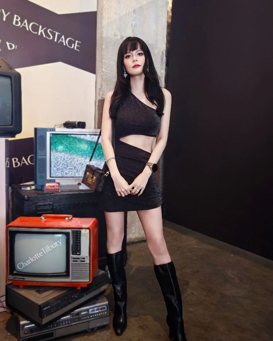 Elsewhere, Jayley’s twin sis turned the heat up at a Charlotte Tilbury event in a shimmery cut-out LBD that showed off her trim waist and a whole load of attitude.