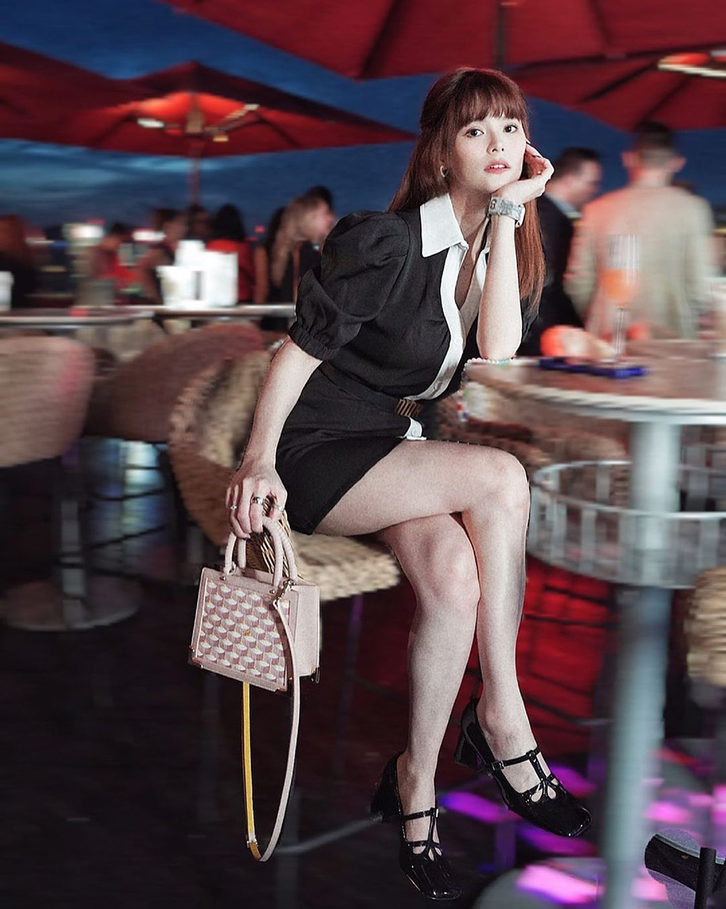 We could swear we’ve seen this “fabulous young tai tai going to tea in Europe”-esque frock on a 90s rom-com heroine somewhere. In any case, Jayley is killing it in this classy ensemble.