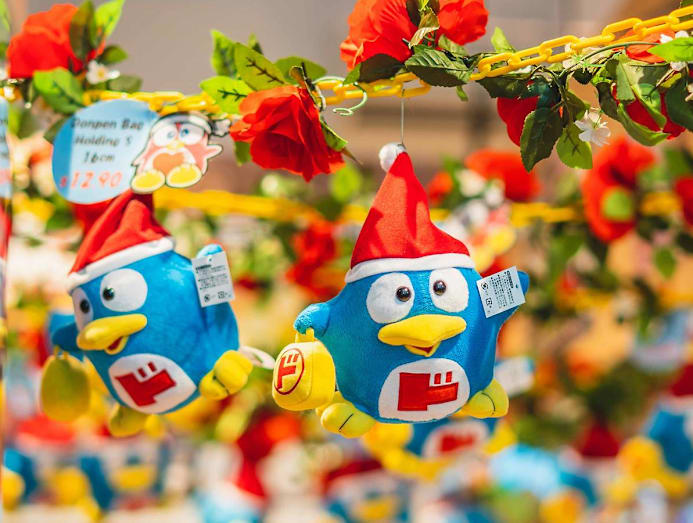 In true Don Don Donki form, no space is wasted here. A cluster of small Donpen (Don Don Donki’s blue penguin mascot) plush toys hangs from the ceiling, for sale.