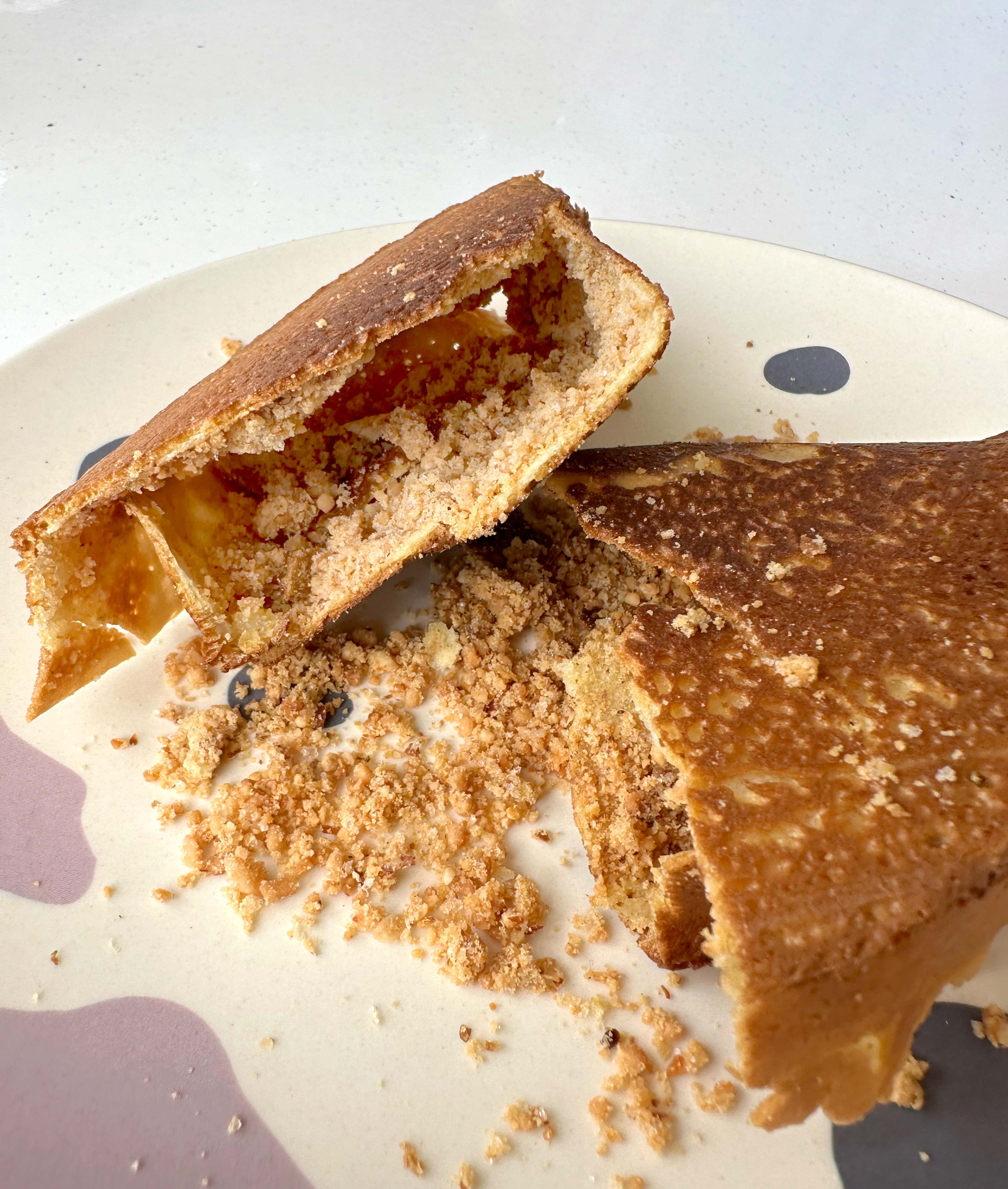 Fragrant, not too sweet crushed peanuts star in this classic pancake. Probably the best offering here, though it could do with a larger scoop of nuts.