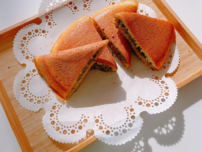 She says it’s relatively easy to make too, though it might require some practice to nail the pancake. It’s all about speed and heat control, says Yvonne. “You have to quickly swirl the pan when you pour in the batter. If you are too slow or if the pan is too hot, the batter will stick to the pan and you will not be able to coat the entire base of the pan. So, what I suggest is to take the pan away from the flame when you swirl. Also, be sure not to add too much oil or you will end up frying the pancake.”