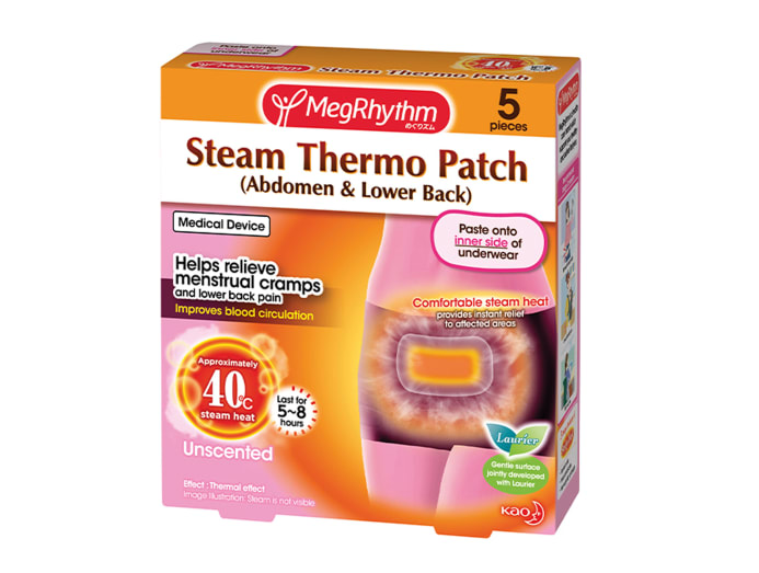 The MegRhythm Steam Thermo Patch for Abdomen & Lower Back is a discreet, thermal heat-based solution to menstrual-related discomfort, and is made of a soft mesh fabric that has been jointly developed with Laurier, a leading sanitary protection brand in Singapore. The slim patch adheres to your underwear with the soft mesh in contact with delicate skin at the abdomen, delivering steam heat for soothing relief, on days you need it most.