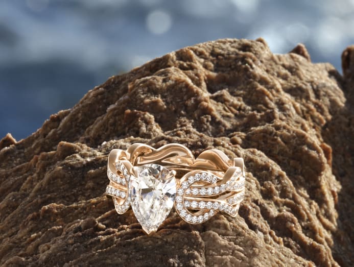 The iridescent Soleil d’Or Radiant Energy ring is designed to encapsulate the beauty of the sun setting over the ocean. Baguette- and brilliant-cut diamonds follow the softness of the ring’s asymmetrical broken lines, with a dazzling 2.55ct yellow diamond taking centre stage.