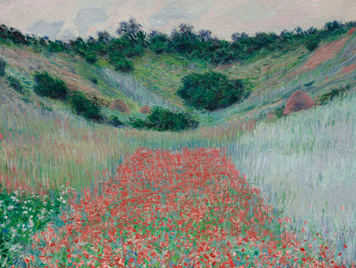 The light in Claude Monet’s Poppy Field in a Hollow near Giverny is almost tender – delicate strokes of red and green that emerge and softly blend into surrounding forms. This fleeting quality embodies a defining aspect of Impressionism.