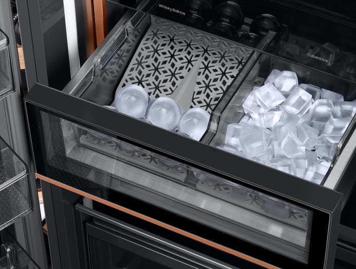 Cocktail and spirits aficionados understand that having the right kind of ice matters. The freezer’s dual auto ice maker provides regular cubed ice and whisky ball ice – perfect for keeping the drinks flowing, and the party going.